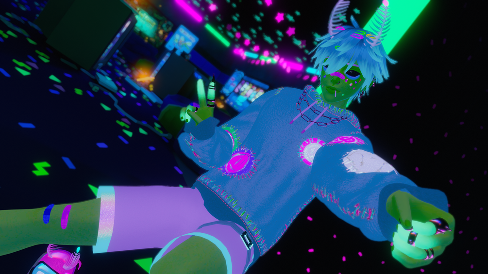 This avatar works really well for raves/parties, but if you feel more chill he can also turn into a monotone chill human guy!
