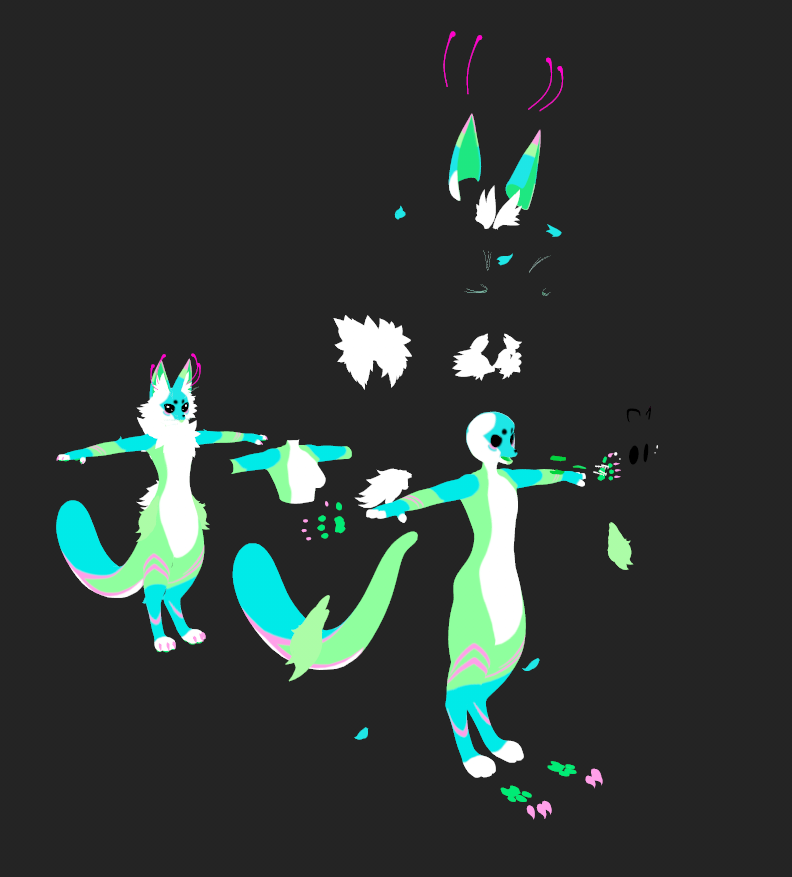 Sometimes Starlumes are born without the bioluminescent spots, and tend to be sheltered more by family without this trait. They can also be born with 2 sets of ears, more ear antennae or none at all, and can have bland simple fur patterns, or very detailed and intricate patterns (aka, you are free to make them look however!)