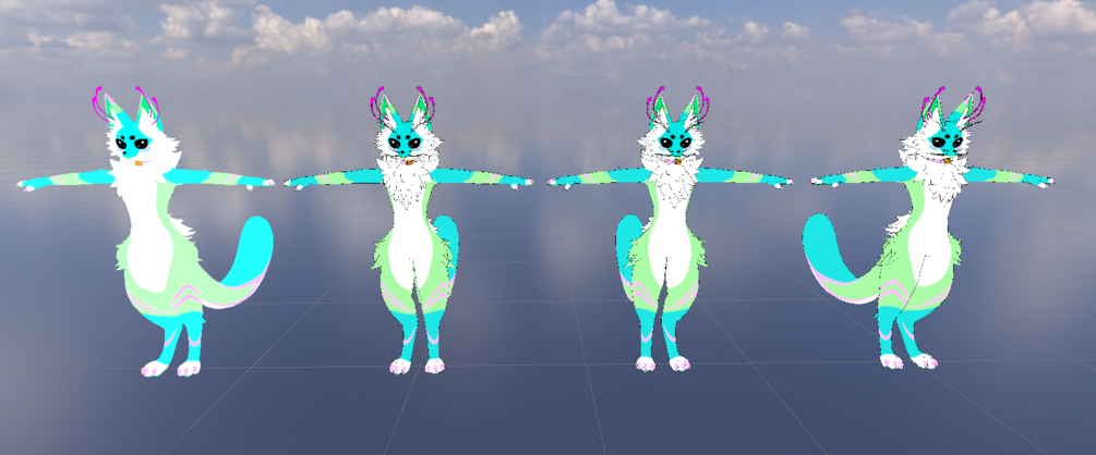 - VTuber version of model has physics and animations for ears to move with face tracking.