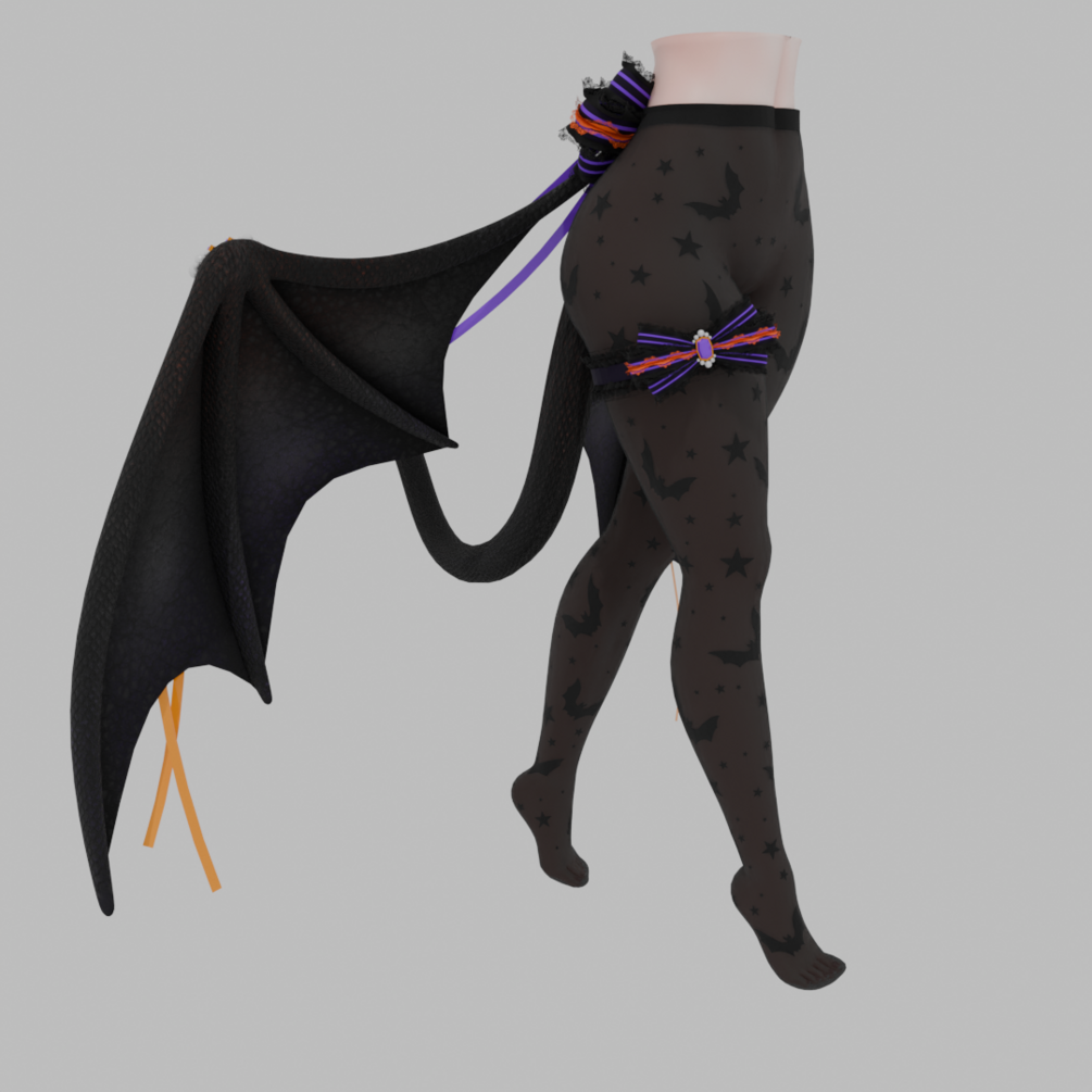 Stockings come with the following textures: Black Tights, Fishnet, Striped (comes with different color combos), and Halloween (bats)